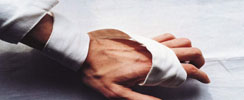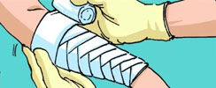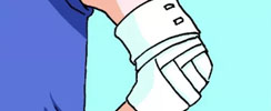 人字形包扎用于能彎曲的關節(jié),如肘部、膝部,還有手和腳跟,方法如下: ·先將繃帶在患者肢體關節(jié)中央處纏繞一圈做固定,然后繞一圈向下,再繞一圈向上,反復向下、向...